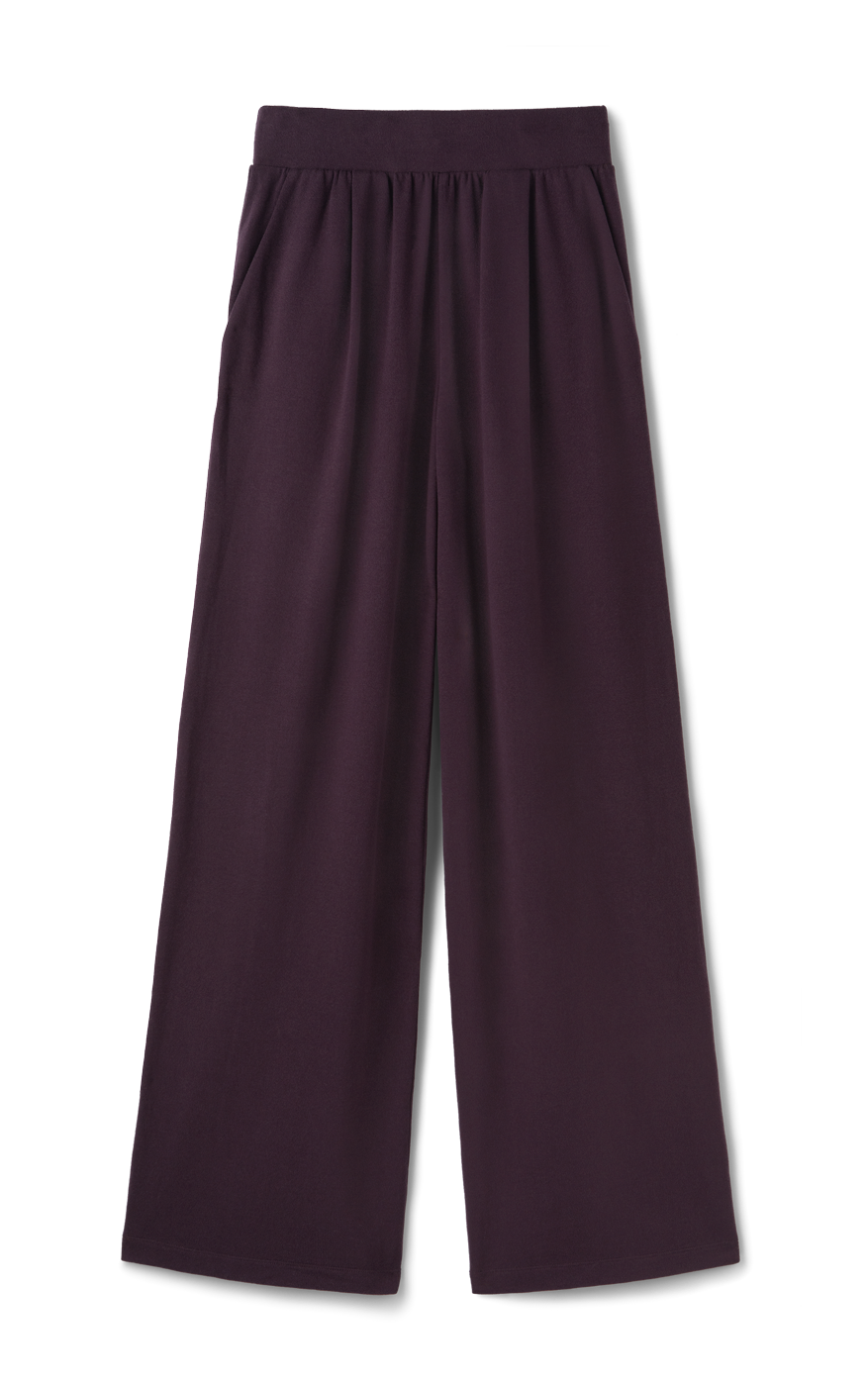 This monochromatic duo pairs fluid lines with a soft, drapey knit that skims the body just right. The wide-leg pants balance ease with elegance, while the wide-neck top brings quiet sophistication to a perfect lounge set.