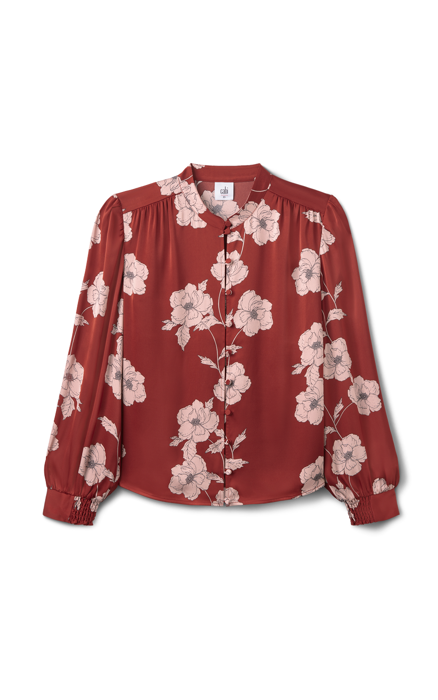 The Bloom Blouse brings soft movement to a bold floral print, blending romantic notes with a confident edge. Styled here with the always classy, perfect fit, Slip Skirt.