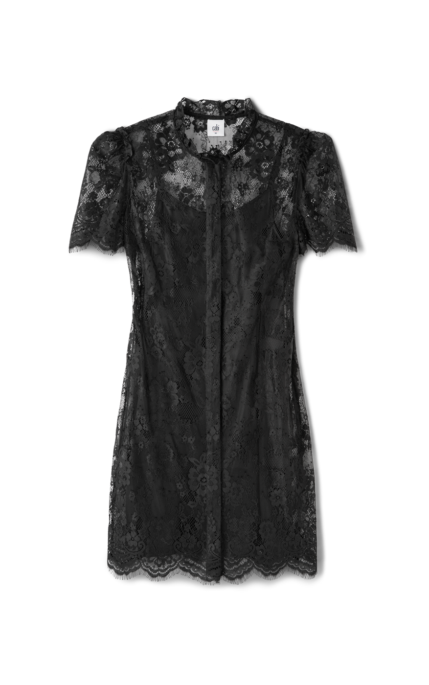 A sleek button-up front gives a classic style a modern twist, while delicate lace sleeves and scalloped edges add a touch of soft femininity. It’s a LBD that owns the room without ever trying too hard.