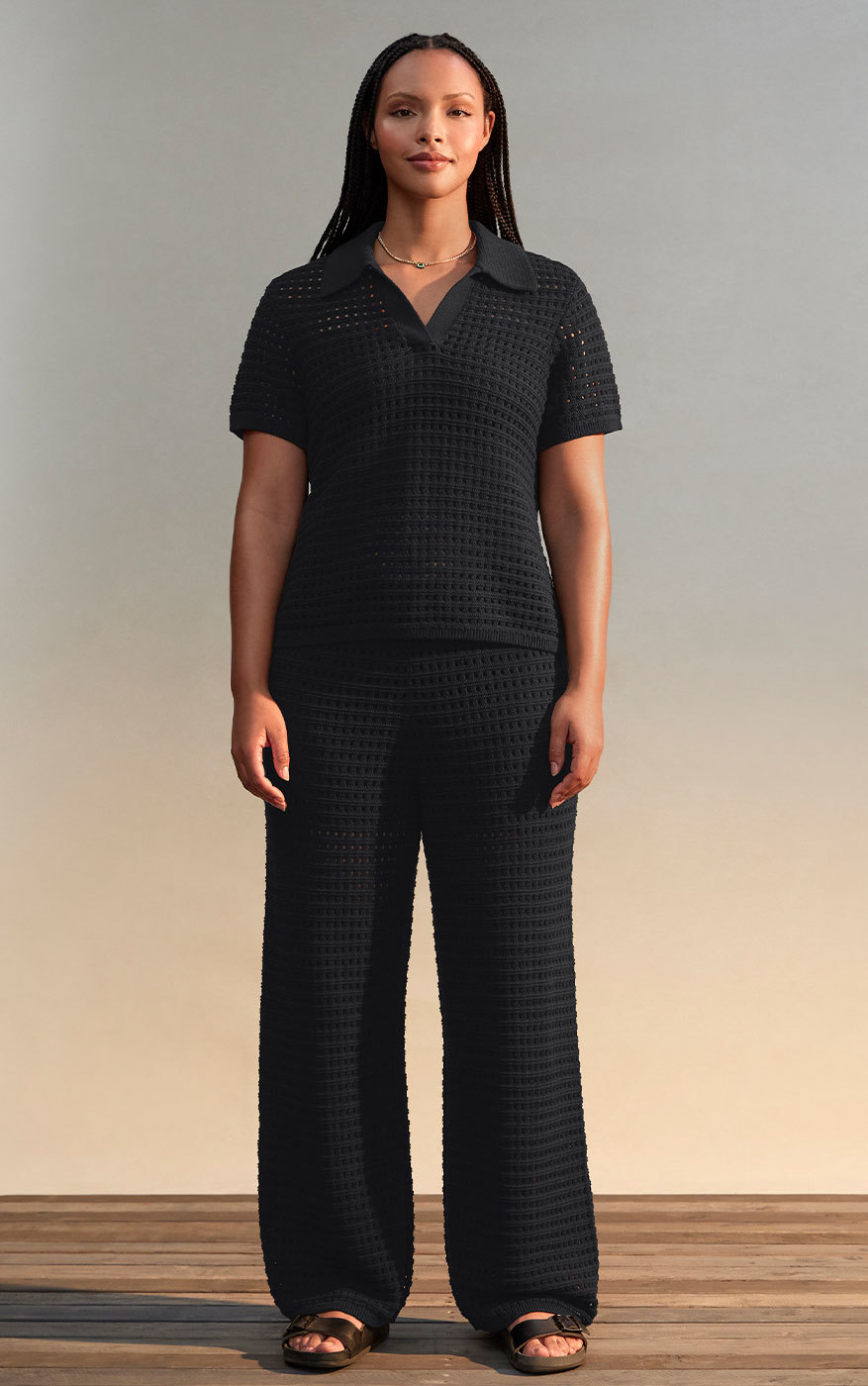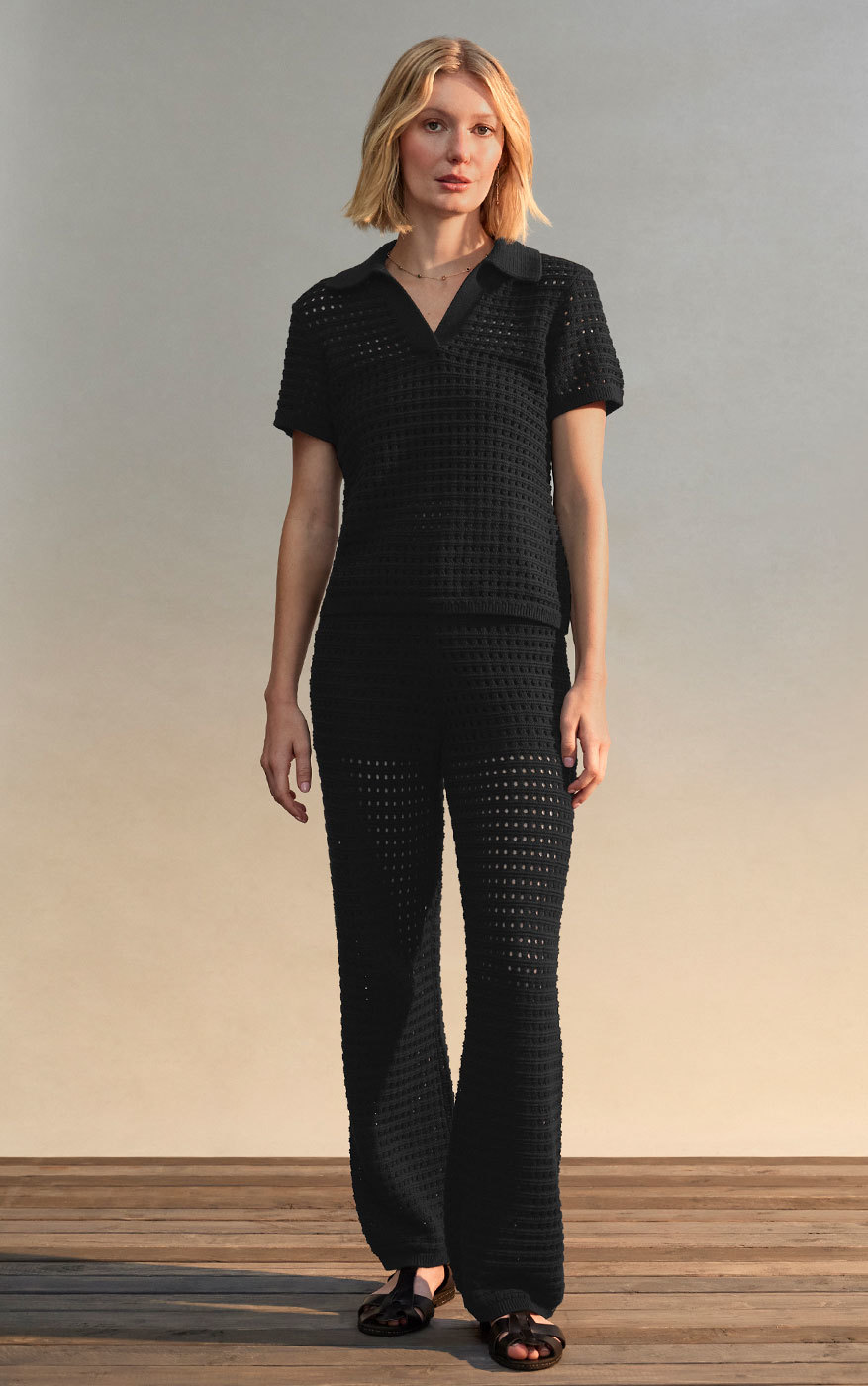 Equal parts chic and comfortable, the Cove Pant brings effortless polish to easy dressing. The crochet-inspired knit adds texture, while the soft nylon short lining keeps these pants perfectly wearable. Designed with a slim fit and ribbed pull-on waistband, you can easily pair with the matching Cove Top for a coordinated look that’s relaxed yet refined.