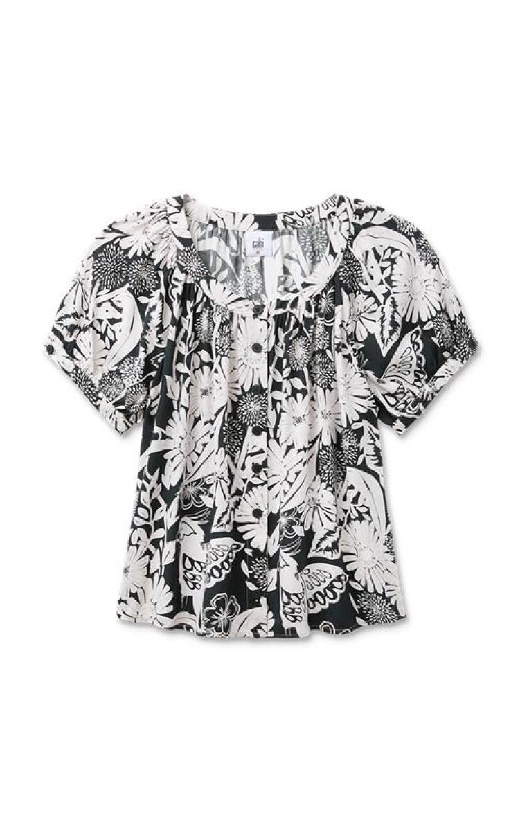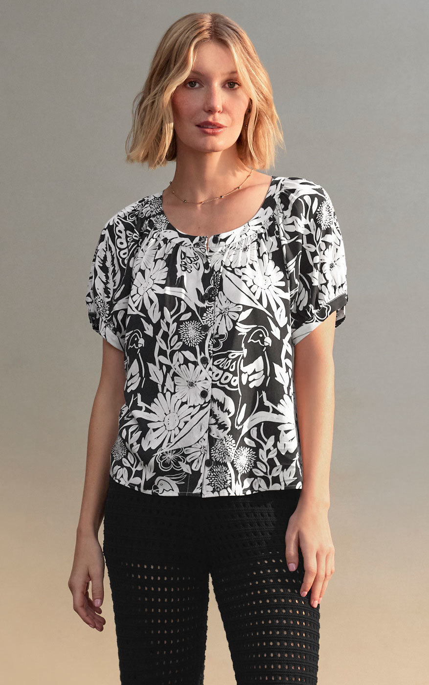 The Rio Blouse brings effortless charm to any outfit. With its relaxed fit and oversized floral print, this top makes a statement in the right ways and easily pairs with trousers for work or light denim for the weekend. It’s banded scoop neck and button front keep it versatile as a go-to top for instant polish with a playful twist.