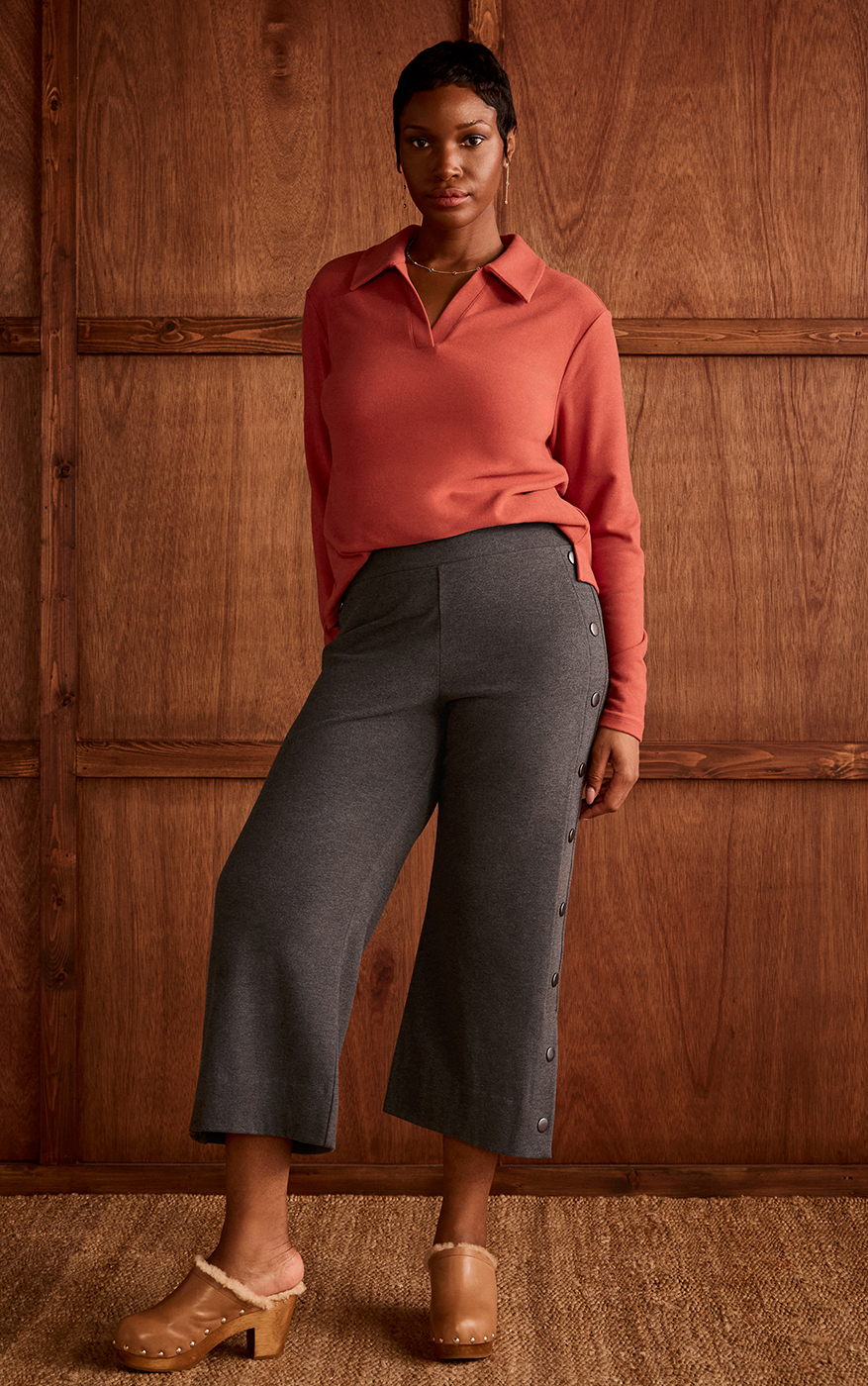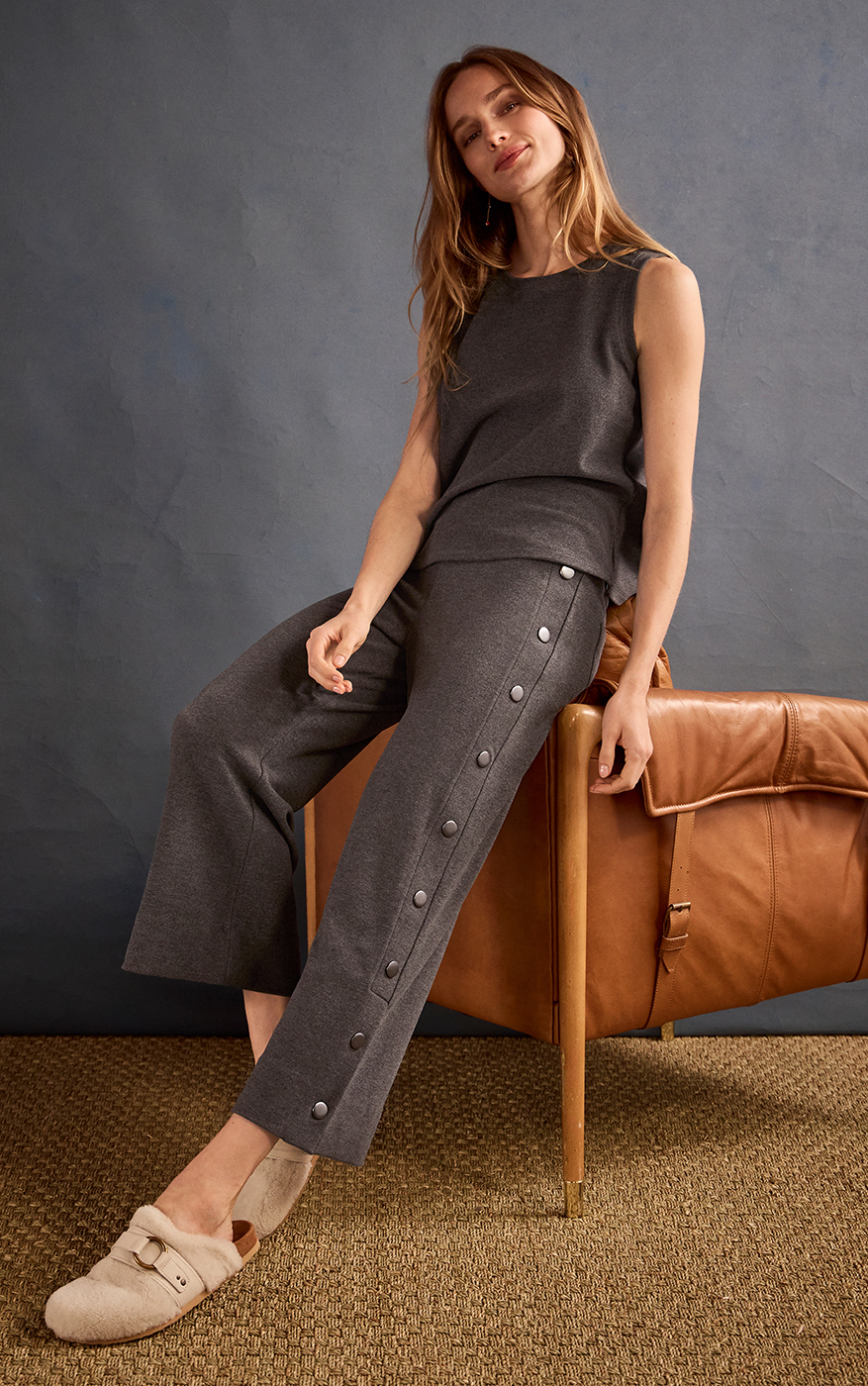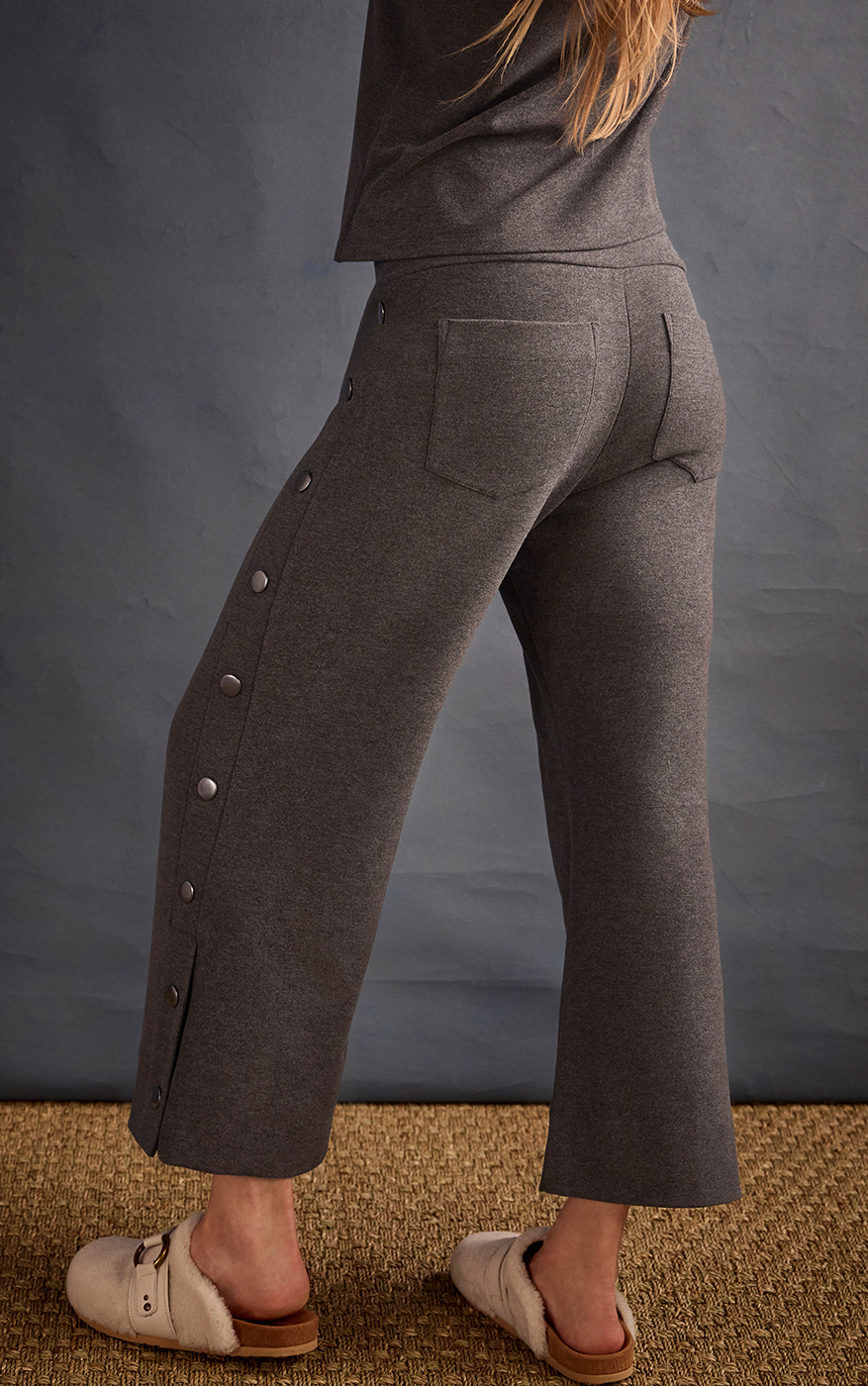With soft brushed knit, wide cropped legs, and functional side snaps, the Snap Crop is designed for a relaxed vibe. Made from the same fabric as the Fall ’24 Unwind Pant, it’s perfect for casual outings, weekend errands, or cozy evenings at home. Pair it with the matching Snap Top or Board Game Pullover for a coordinated look that’s both put-together and easygoing.