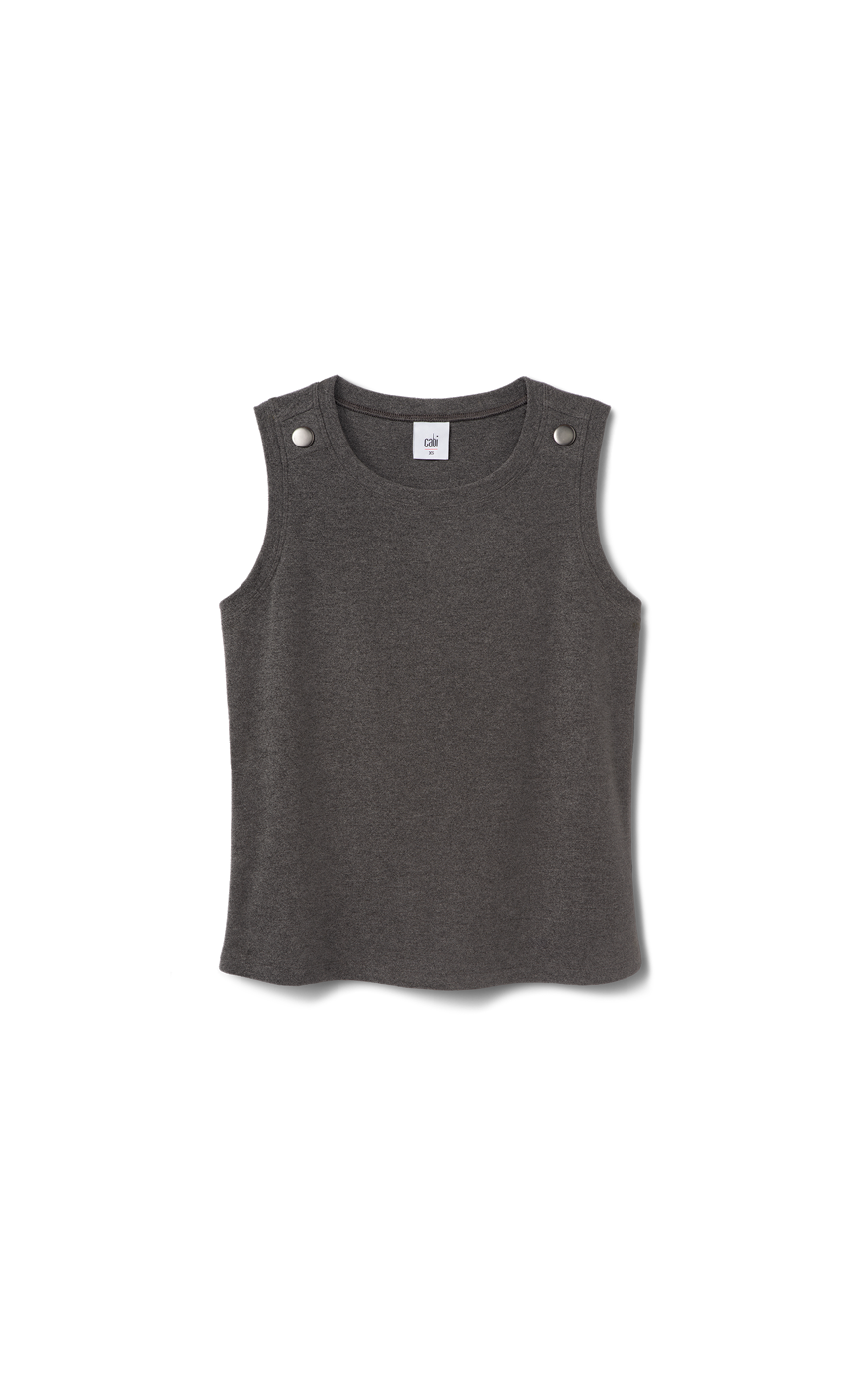 The Snap Top is crafted from a brushed knit fabric for a slim yet comfy fit, with decorative shoulder snaps and side slits. Made from the same fabrication as the Fall '24 Unwind Pant, it’s ready to complete any outfit in a snap—pair it with the Snap Crop for a particularly pulled-together look.