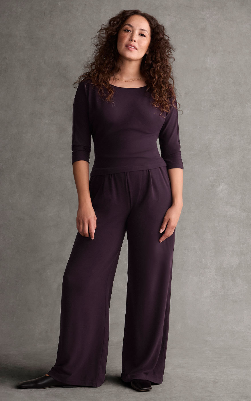 The perfect match to the Starlet Top, these merlot wide-leg pants strike the ideal balance between relaxed and refined. Crafted from a supersoft brushed knit, they drape beautifully and move with you from desk to dinner.