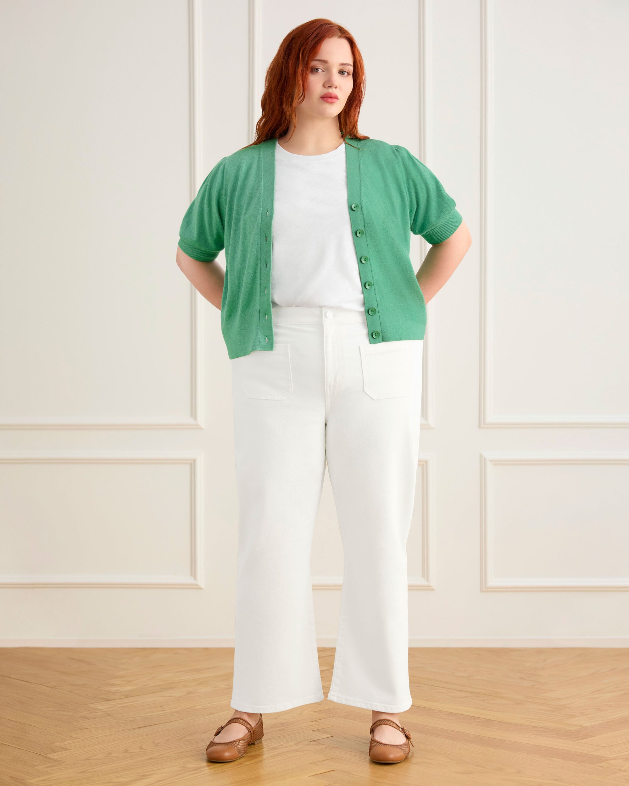 The Caprice Cardigan is done in trending green for an easy pop of color to your spring wardrobe. Designed in lightweight fabric and short sleeves, this cardigan is a perfect transitional piece to carry you through the season. Button it up to wear as a top with jeans, or leave it open and pair with a neutral cami or tee.