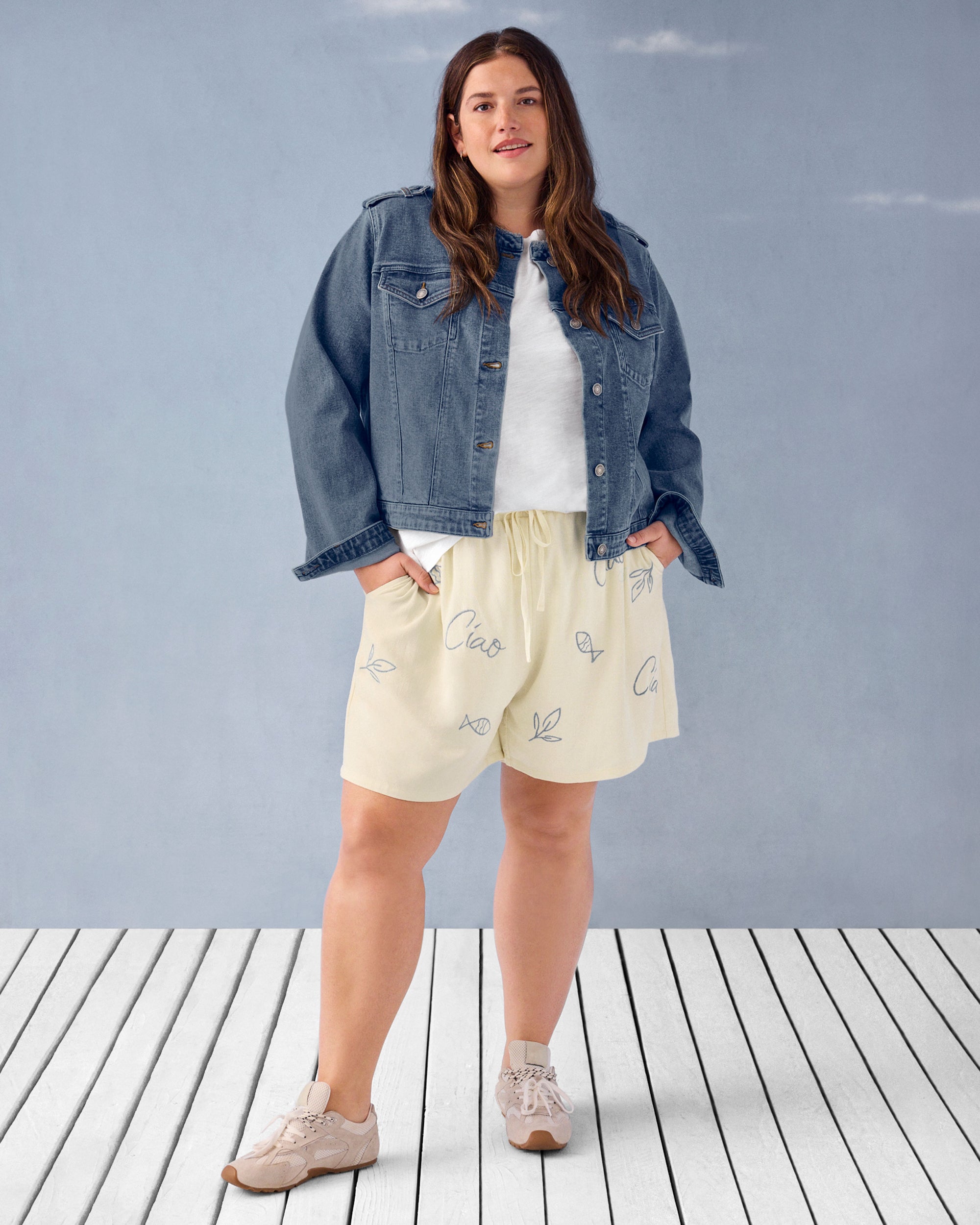 Say “hello” to the Pier Short—a match made in heaven for the Pier Top, featuring the same graphic embroidery. Fully lined with an elastic waistband and side-seam slits, it’s designed for easy wear—ideal for sunny days by the pool or for dining al fresco.