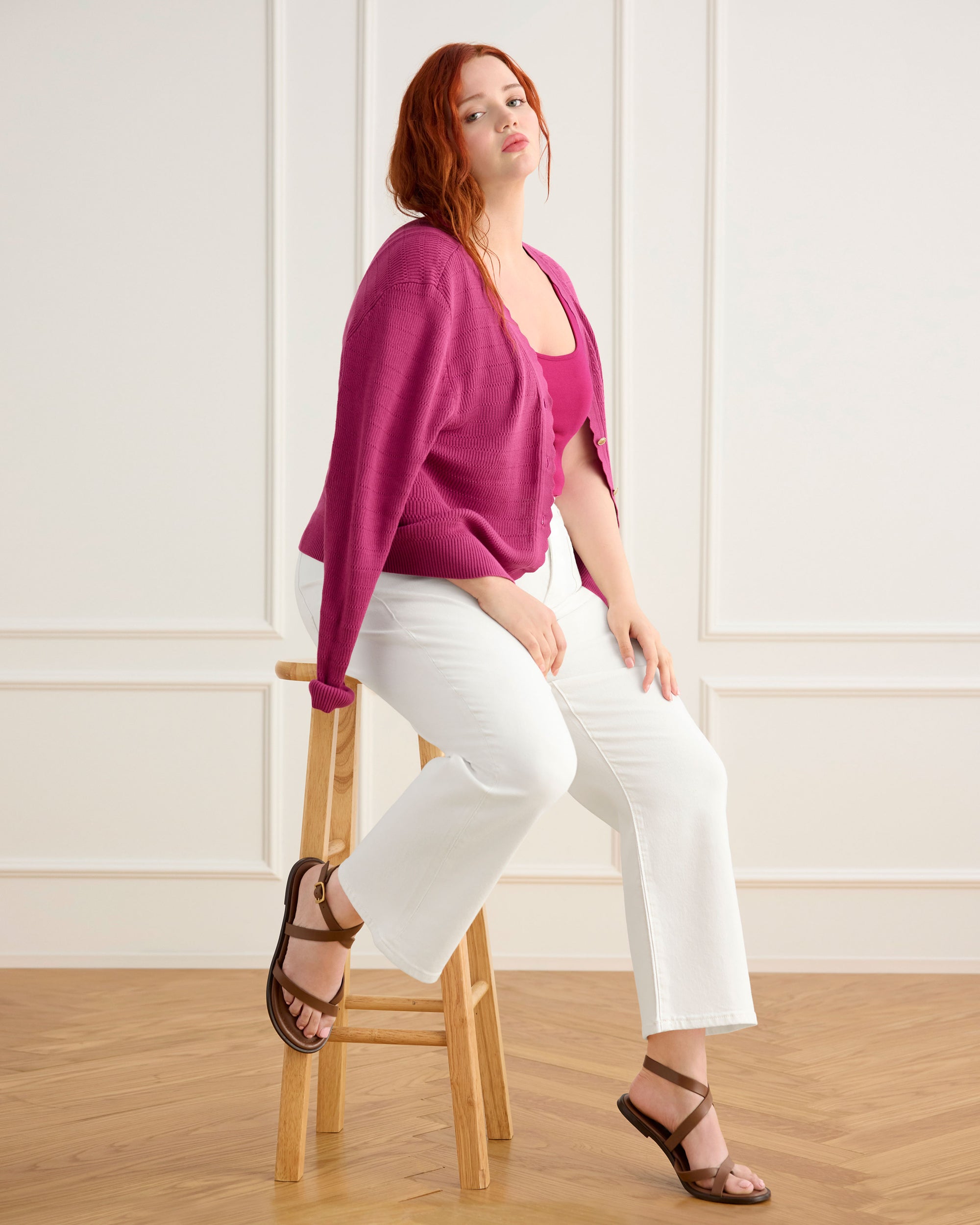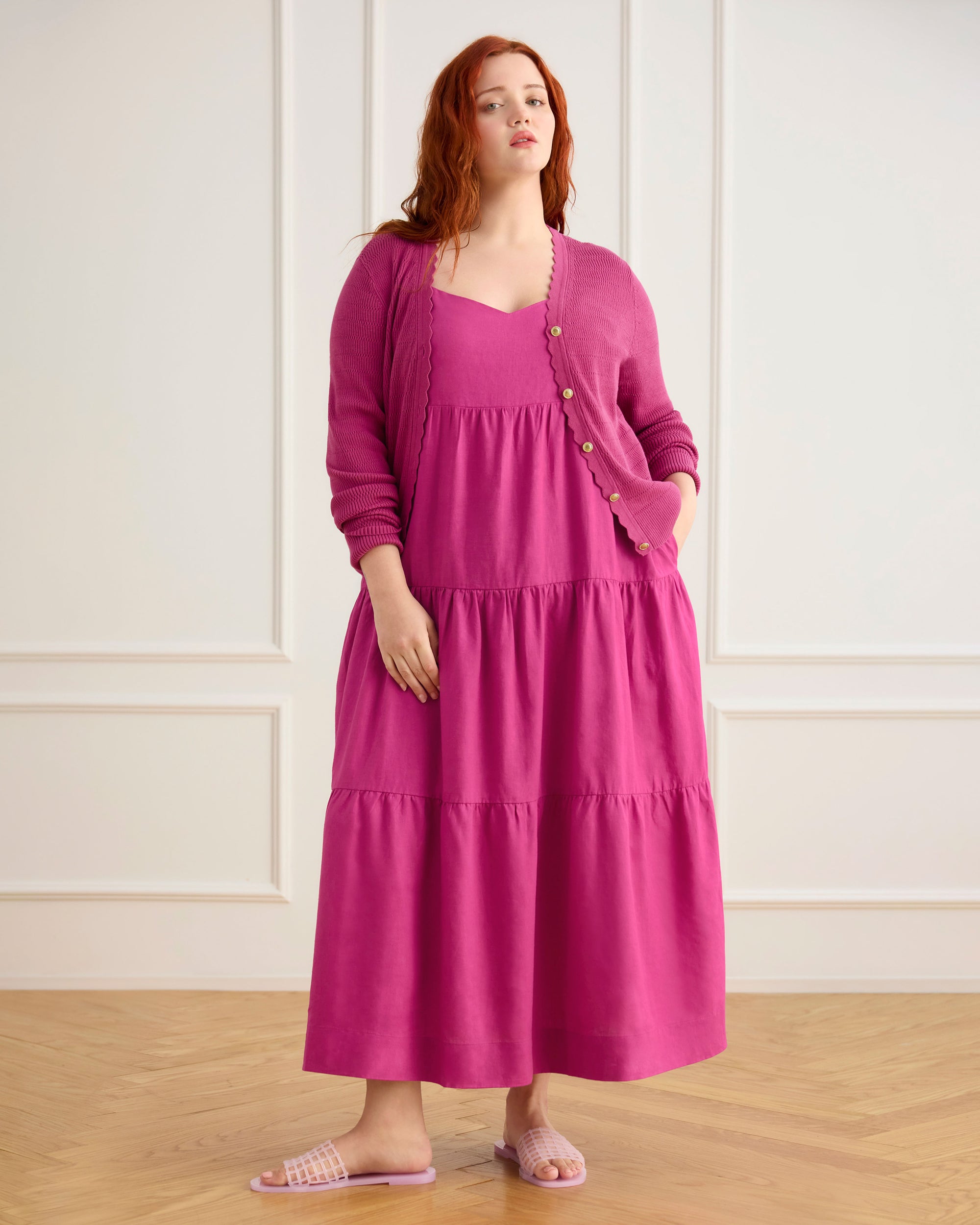 The Treasure Cardigan shines in every sense—finished with novelty gold buttons, a scalloped V-neckline, and a richly textured stitch that feels like a true gem in your wardrobe. This bright fuchsia style can be worn as a top or layered over the Charm Tank or Kathleen Dress. Whether you’re dressing for a garden party or simply wanting a pop of color, this is the piece you’ll treasure for all the ways to wear.
