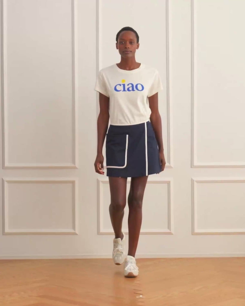 Go from the tennis courts to cocktails easily in the Skyler Skort. It’s classic navy color with white trim and faux-wrap with front pocket make it a fun, yet tailored way to mix up your style. With shorts underneath for protection and a back zipper, you can pair this with the Portside Jacket for a stylish set.
