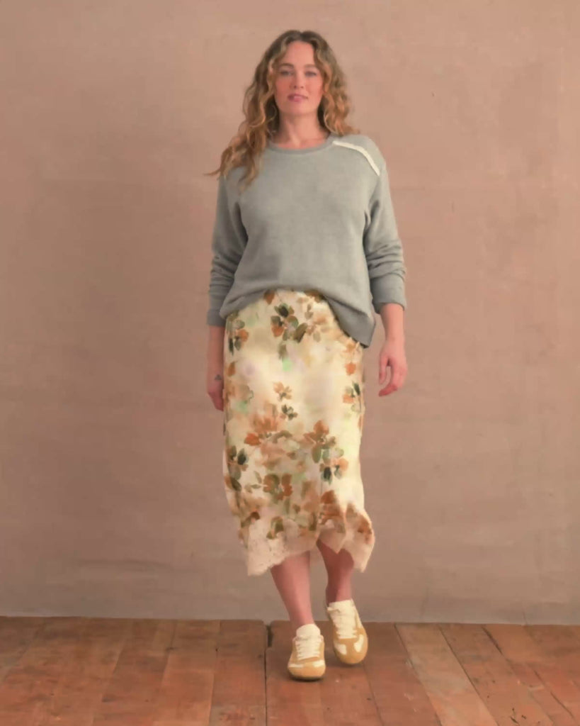Effortless cool meets everyday comfort in the heather gray Playtime Pullover. Featuring a classic crewneck and subtle inside-out detailing at the seams and back, it elevates a simple silhouette with thoughtful touches. An inside print at the back neck adds a playful detail. Perfect with denim, shorts, or casual skirts, this chic sweatshirt takes playtime into overtime.