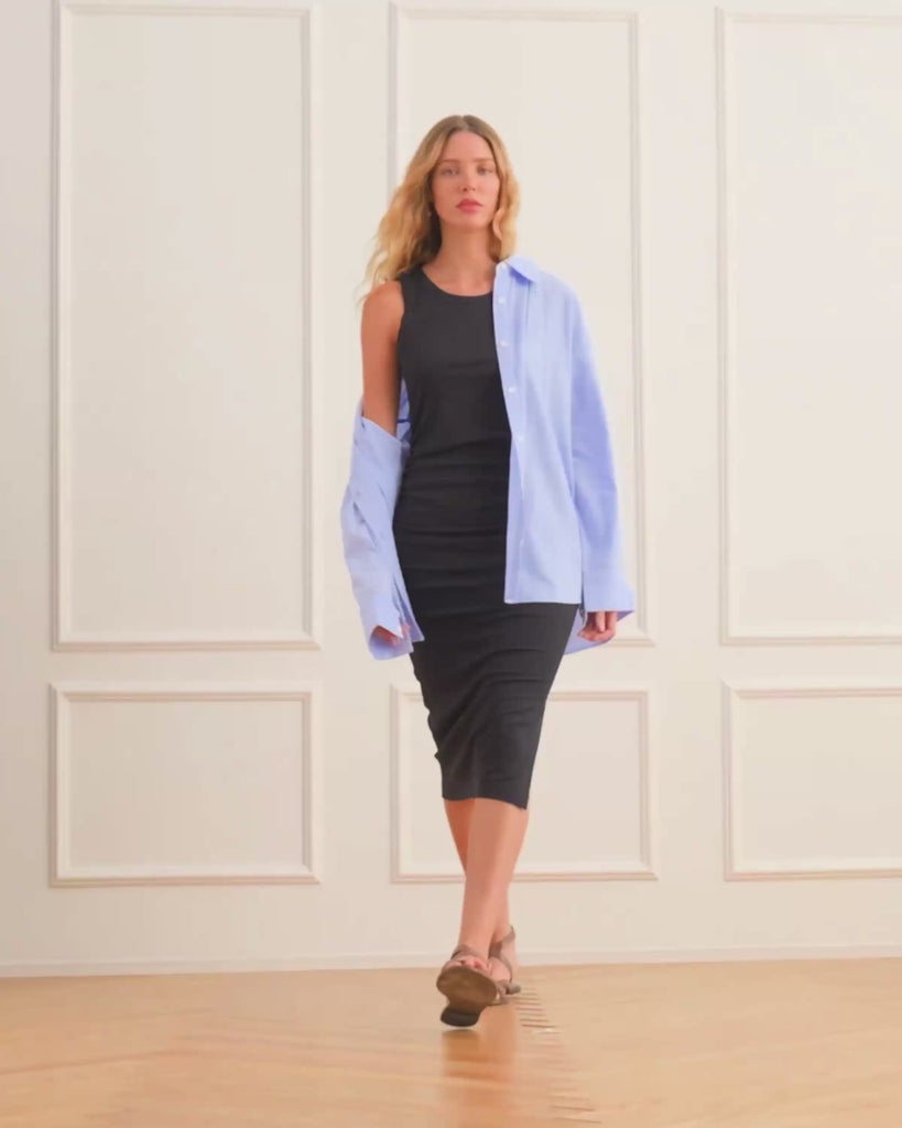 The Kick It Shirt is the only chambray shirt you need this season. With its relaxed fit and slightly dropped shoulders, this shirt still gives you the structure you love in all the right places. A traditional collar and button front, you have endless styling options: summer topper, buttoned and tucked, or styled with chic accessories for a cool-girl look.